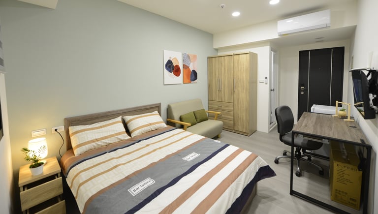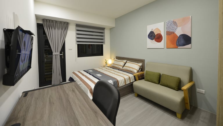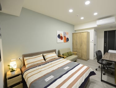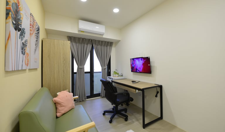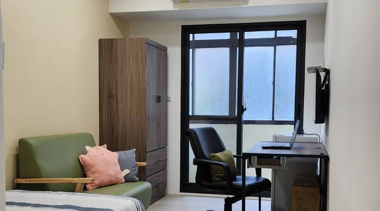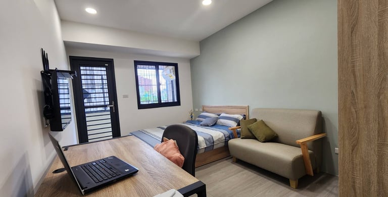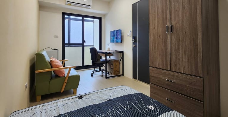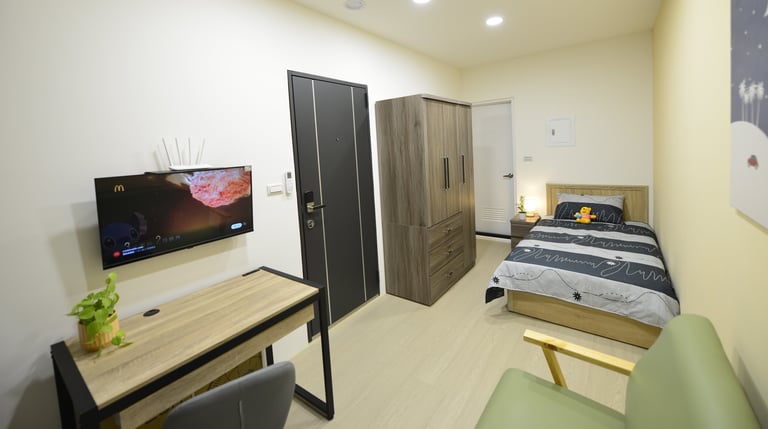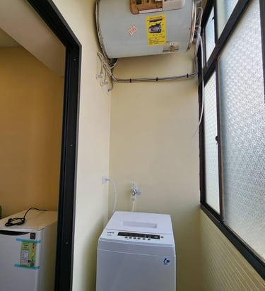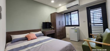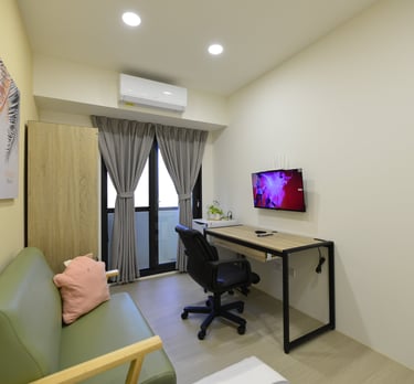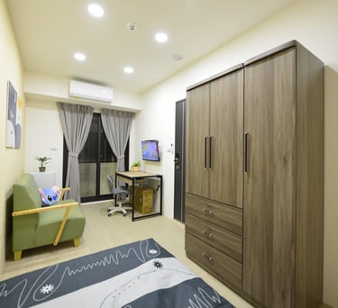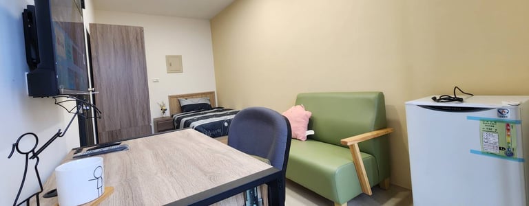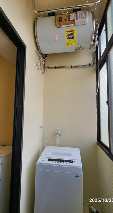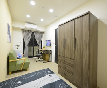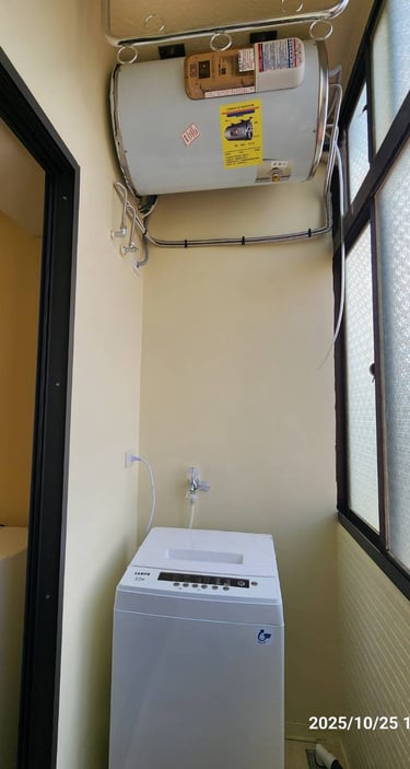 2.每間套房皆配備獨立陽台(可曬衣)、獨立桶式電熱水器(熱水穩定)、專屬洗衣機(衛生便利)、獨立網路環境(資訊安全),並提供網路電視、冰箱、冷暖氣機、電風扇,滿足日常生活所需。
