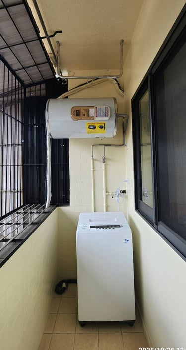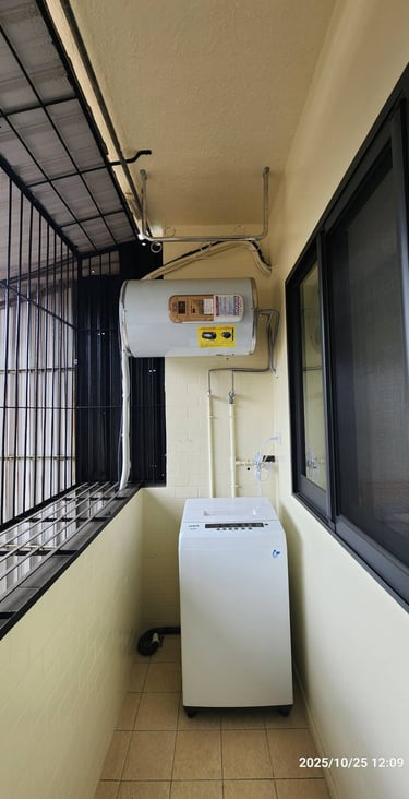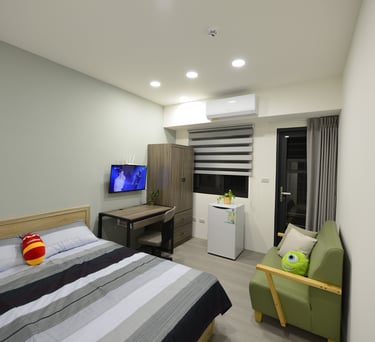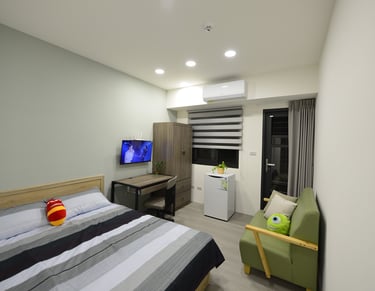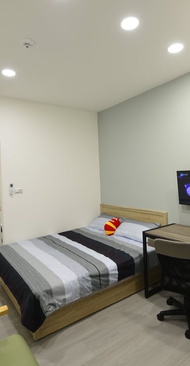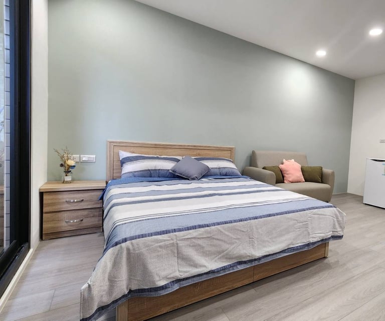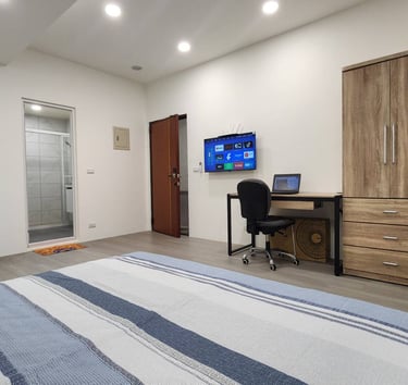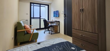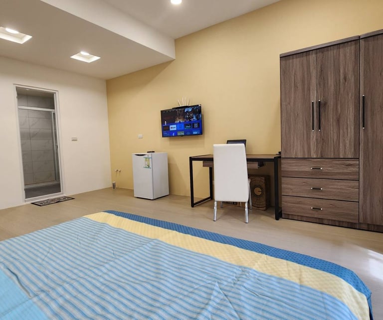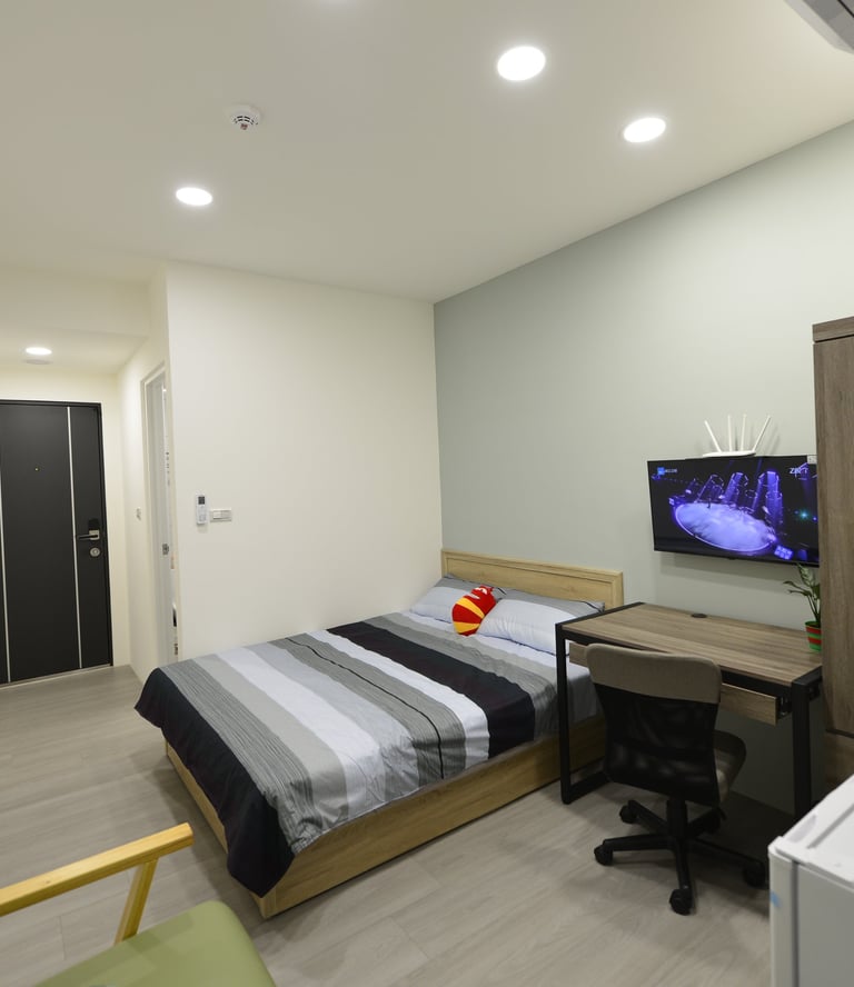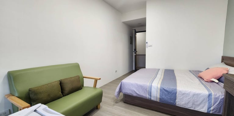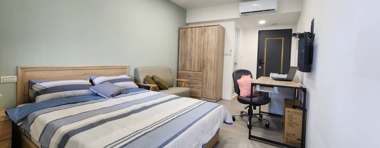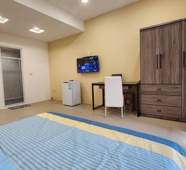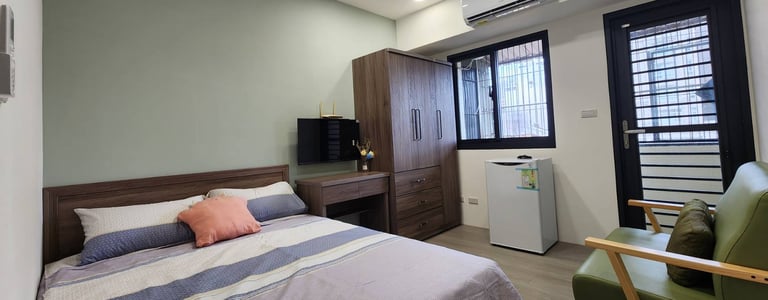 2.每間套房皆配備獨立陽台(可曬衣)、獨立桶式電熱水器(熱水穩定)、專屬洗衣機(衛生便利)、獨立網路環境(資訊安全),並提供網路電視、冰箱、冷暖氣機、電風扇,滿足日常生活所需。