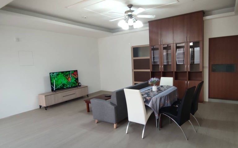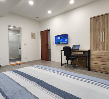 2.電器設備完善,提供洗衣機、電視與冰箱,並配備獨立網路環境與兩台 Wi-Fi 6 Mesh 路由器,確保全屋網路零死角,無論工作或娛樂皆順暢無阻。