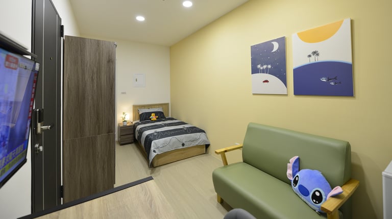 一樓「機能生活套房」共兩間,空間寬敞、動線順暢,出入便利,特別適合通勤族與喜歡低樓層的住戶。